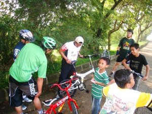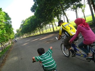 Jam 6.00 saat mestinya para “sepedawan” mulai berkumpul, ternyata belum ada yang nongol. Malah tetanggaku yang nongol duluan sambil ngajak anaknya yang masih pakai sepeda roda 4.