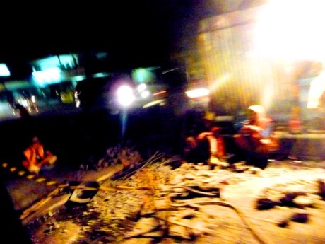 Ada perbaikan jalan di depan Pertamina [depan loket Bis Rosalia], sehingga semua kendaraan berimpitan disitu. Dalam hari aku berpikir, apa para pelaksana pekerjaan ini tidak berpikir, bahwa jam sibuk jalan ini ada di jam pulang kantor dan jam berangkat kantor.