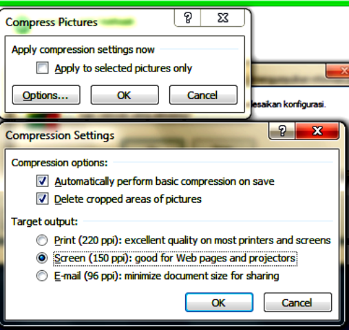 Pilih compress pictures dan akan terlihat menu pop up sebagai berikut.