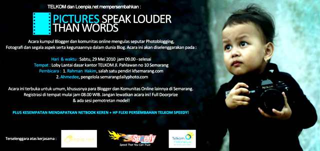 Bekerja sama dengan Telkom, maka para blogger Semarang yang tergabung dalam wadah Loenpia.net menyelenggarakan kumpul Blogger dengan mengambil fokus bahasan Photoblogging.