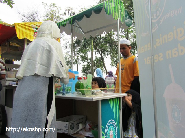 Hari Minggu yang lalu saya juga ke Pasar Festival dan kebeneran Istri saya beli Ice Cendol. Entah haus atau enak rasanya sampai-sampai dia gak sempet nawarin saya Ice Cendol tersebut sampai habis. Untung saja saya sudah terlebih dulu beli air minum lainnya…. Klo mo beli untuk Buka Puasa dimana ya..???