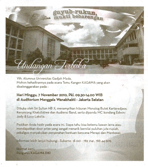 Semoga ajakan untuk “Guyub Rukun Mukti Bebarengan” ini tidak hanya untuk alumni UGM saja, tapi ajakan untuk semua alumni agar hidup rukun dan sukses bersama-sama. Jangan sampai ada yang sedang terkena bencana tapi malah ditinggal plesir kemana-mana.