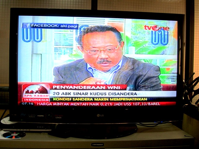 Di TV One pagi ini, kubaca di layar monitor, ternyata ada sekitar 400 kapal yang diserang oleh para perompak Somalia dan sekitar 1.800 orang yang diculik pada kurun tahun 2010. Luar biasa !