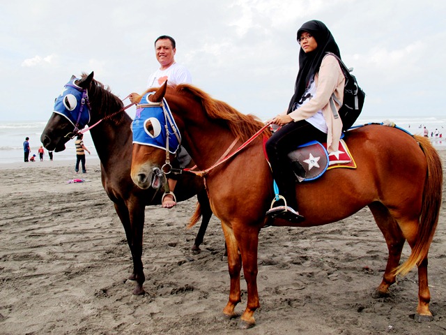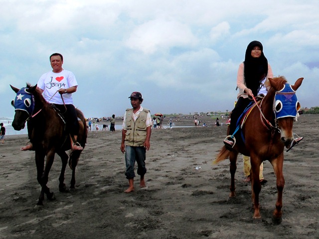 Kalau sudah memegang kekang kuda, maka rasanya kita jadi pahlawan berkuda di jaman dulu. Berjalan santai di samping deburan ombak pantai Selatan dan berpapasan atau mendahului para pejalan kaki yang ada di sepanjang bibir laut selatan.