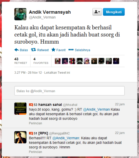 Saat ini memang sudah jamak para pesepak bola berkicau melalui akun twitter masing-masing. Beberapa pelatih tidak berkenan dengan adanya kebiasaan baru ini, tetapi tetap saja mereka asyik berkicau di akun twitter mereka masing-masing.