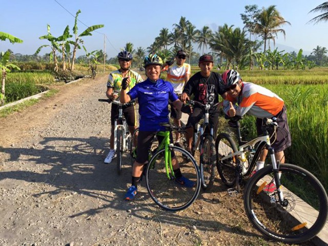 Awalnya aku hanya berdua dengan mas Anjat, bersepeda menuju Warung Ijo Pakem untuk ngobrol sesama pesepeda yang selalu memenuhi warung. Kalau tidak salah pagi itu ada juga rombongan dari Kapolda yang rajin menyemarakkan suasana warijo (Warung Ijo). Setelah ngobrol kesana-kemari dengan berbagai teman pesepeda dari berbagai komunitas, maka akupun melanjutkan rute gowesku menuju ke arah Prambanan.