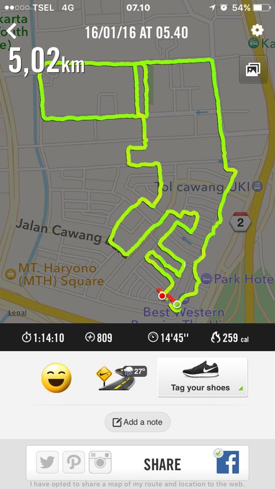 Di atas adalah catatan dari Endomondo dan di bawah catatan dari Nike Running.
