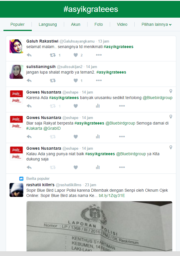 Aku memilih mengajak berdamai yang pro dan kontra taxi online dengan membuat kicauan di twitter, yang juga diikuti oleh banya netizen.
