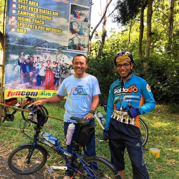 Peserta senior yang menarik memang mbah Kung Endy no 404 dan mas Supono Onthel Jogja. Mbah Kung menarik karena semangatnya yang bisa dijadikan contoh bagi anak muda saat ini. Mas Supono Onthel menarik karena sepeda onthelnya yang selalu setia menemaninya, baik di jalan berliku maupun menanjak. Aku pernah meragukan kemampuan mas Supono ketika berencana untuk mengikuti acara gowes ke kebun buah Mangunan. Aku bilang ke panitia bahwa ada salah satu peserta yang memakai sepeda yang berbeda, sehingga mungkin perlu ada perlakuan khusus.