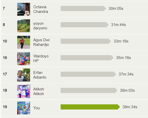 Aku hanya mengikuti program dari arahan COACH Garmin,”jalan 5 menit dan lari 1 menit, relaksasi 5 menit dan rangkaian lari jalan itu diiulang 3 atau 4 kali.” Tanpa terasa aku sudah jadi pelari (?), meskipun masih tingkat sangat amatir dan belum pernah mencoba lari lebih dari 5K. Target tahun 2019 segera kurevisi, yang tadinya tahun ini aku punya target “lari 5K, sekarang kurevisi menjadi 10K atau syukur malah dapat HM (Half Marathon) 21K.”