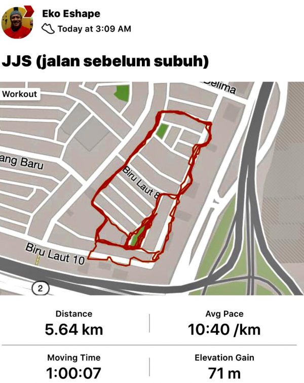Menjelang bulan puasa ini seorang teman berkata padaku,”enak ya mas Eko sudah punya kegiatan olah raga di bulan puasa”, aku sendiri malah tidak “ngeh” dengan perkataan temanku itu, baru setelah kucermati kegiatan olah ragaku akhir-akhir ini di Strava, rupanya memang cocok kalau dilakukan pada bulan puasa nanti. Pada hari-hari tertentu, terutama Selasa dan Kamis, aku memang keluar rumah untuk olah raga pada sekitar jam 03:00 sampai jam 04:00, kegiatan inilah yang dianggap temanku sebagai persiapanku untuk menyongsong bulan puasa nanti.