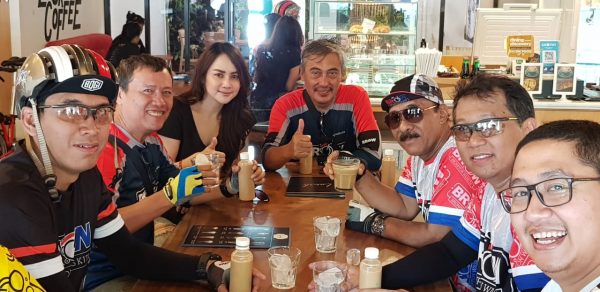 Pengalaman tahun-tahun lalu sudah berbicara, bahwa kita akan kuat melahap rute yang ada, tapi kalau tanpa latihan tentu akan lain rasanya. Badan pasti jadi pegal-pegal setelahnya, maklum dipaksa untuk gowes jarak jauh tanpa latihan. Komunitaskupun menyadari hal itu dan kemarin kita habiskan hari dengan gowes. Yang bikin runyam ketika mampir ke warung kopi, ternyata godaan untuk kuliner (ngopi) lebih besar dari hasrat untuk latihan bersepeda jauh. Jadilah hari itu lebih banyak berfoto ria.