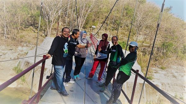 Ketika menemui jembatan Wanagama, kami benar-benar merasa sudah sesuai jalur yang akan kita tempuh di hari “H” nanti, karena semua rute memang harus melalui sungai (Oya) tersebut. Kamipun memilih melalui jembatan saja, setelah sampai Jogja bariu kami sadar bahwa jembatan itu hanya mampu untuk 300 KG, alias tidak akan mampu dilewati banyak peserta, artinya semua peserta bisa jadi tidak akan lewat jembatan tapi semua harus melewati anak sungai. Ini suatu hal yang masih jadi pemikiran kami, bagaimana caranya agar sepatu tidak bermasalah ketika mekewati anak sungai terbut.