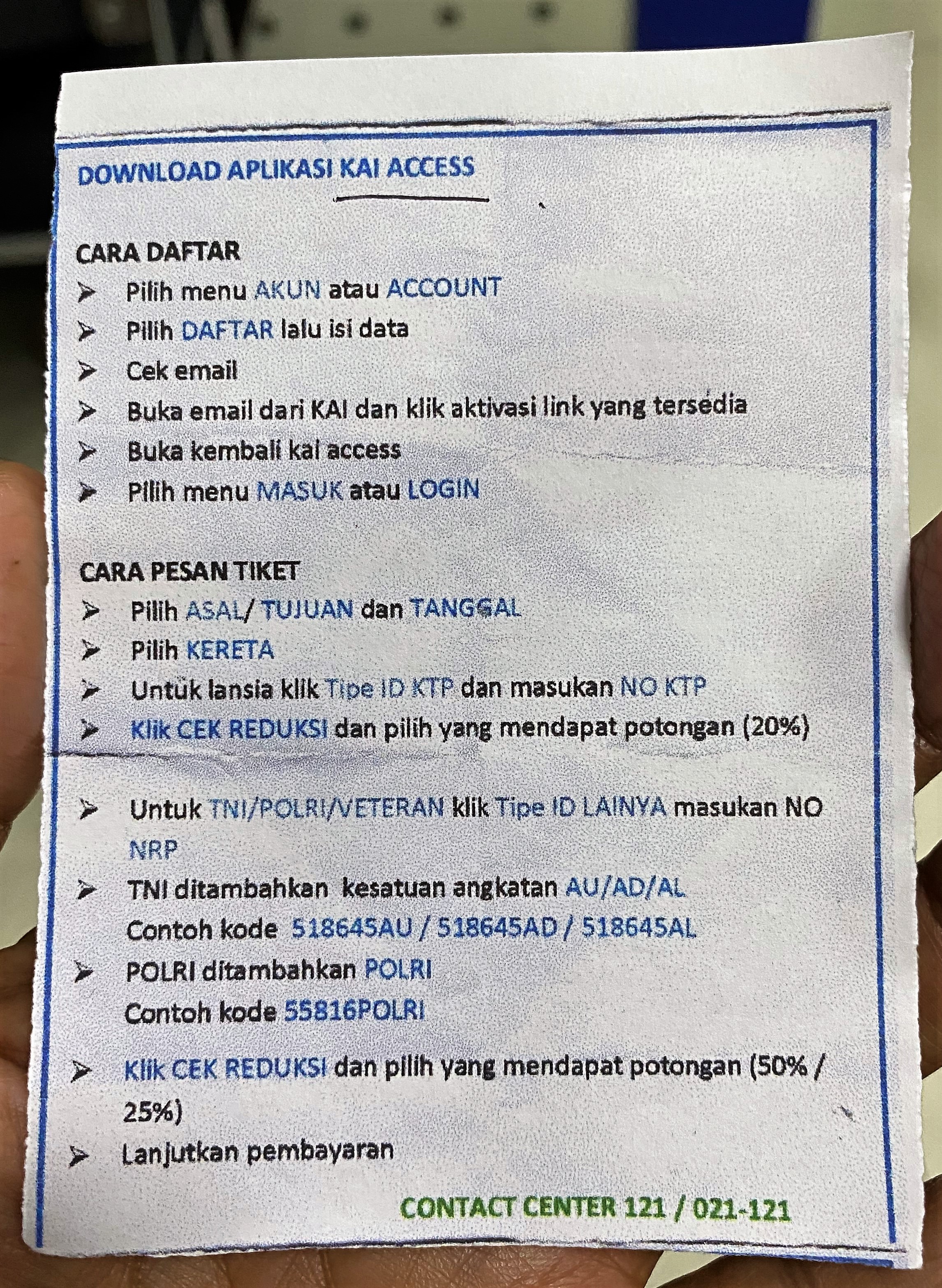 - Ambil nomor antrian daftar reduksi tiket KAI di ruang CS.