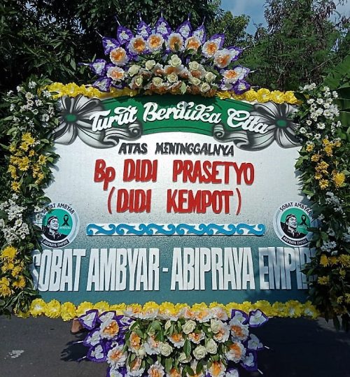 Temanku yang sobat ambyar “minded” juga sudah mengirim karangan bunga buat mas DK, karena memang DK telah banyak menginspirasi mereka untuk menghadapi hidup ini dengan gaya DK, tetap bersemangat walupun selalu dalam suasana “melow”. Temanku yang lain bilang begini,”lagunya sedih tapi tetap bisa dipakai goyang, jadi ya begitulah mas yang penting ada CENDOL DAWET”