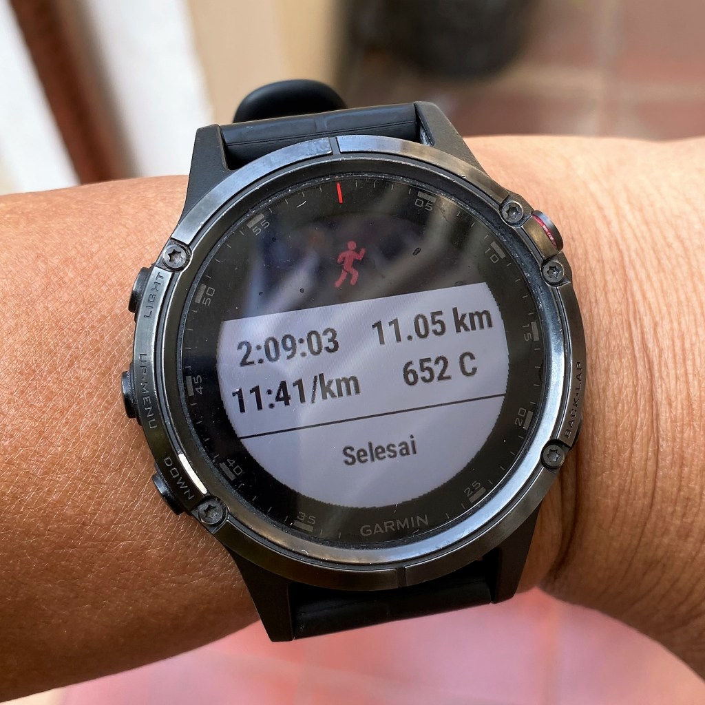 Alhamdulillah dengan pace zona aerobik aku dapat menikmati olah raga dengan nyaman dan tenang, meski angka VO2max tetap saja bertahan di angka normal dan tidak naik-naik, aku tetap terlihat lebih muda dari umur sebenarnya, tetap selalu semangat menghadapi hidup dan kehidupan ini. Kalau pas ada waktu senggang dan badan sedang terasa enak, baru aku mencoba juga pace anaerobik, sehingga badan bisa lebih berkeringat dan bisa sarapan lebih banyak plus lebih nikmat.