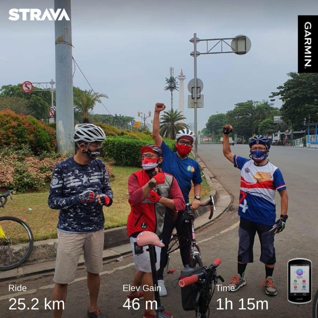 Salah satu guru lariku ternyata juga suka bersepeda, jadi kumanfaatkan pertemanan ini dengan mengajaknya bersepeda gembira ke kampus UI Depok yang teduh dan bikin kangen. UI Depok memang pernah jadi memori buatku, saat itu aku ikut HM UI, nginap di salah satu hotel di Depok dan sepatuku ketinggalan di mobil yang parkir di (Cawang) jakarta. Jadinya malam-alam aku harus keluar hanya untuk membeli sepatu baru, terpaksa tidak ikut aturan dan memakai sepatu baru untuk race yang dilaksanakan besok paginya. Alhamdulillah, acara HM UI dapat kulalui dengan sempurna, ketemu banyak teman dan diakhiri dengan kuliner yang merakyat plus sisa hasil patungan bisa kita donasikan untuk kegiatan amal yang lain sesuai dengan nama komunitas kita KLUB (Kagama Lari Untuk Berbagi).
