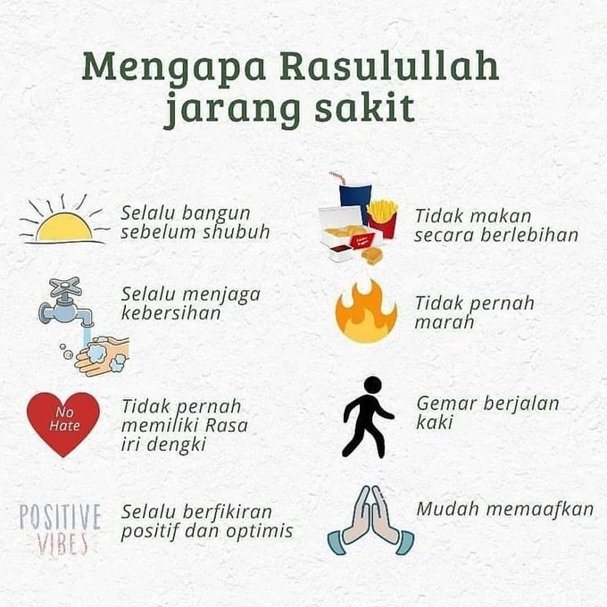 Selalu bangun sebelum subuh, tidak makan secara berlebihan, selalu menjaga kebersihan, tidak pernah marah, tidak pernah memiliki rasa iri dengki, gemar berjaan kaki, selalu berpikiran positif dan optimis, yang terakhir mudah memaafkan, sungguh panutan yang bisa jadi panutan sepanjang masa.