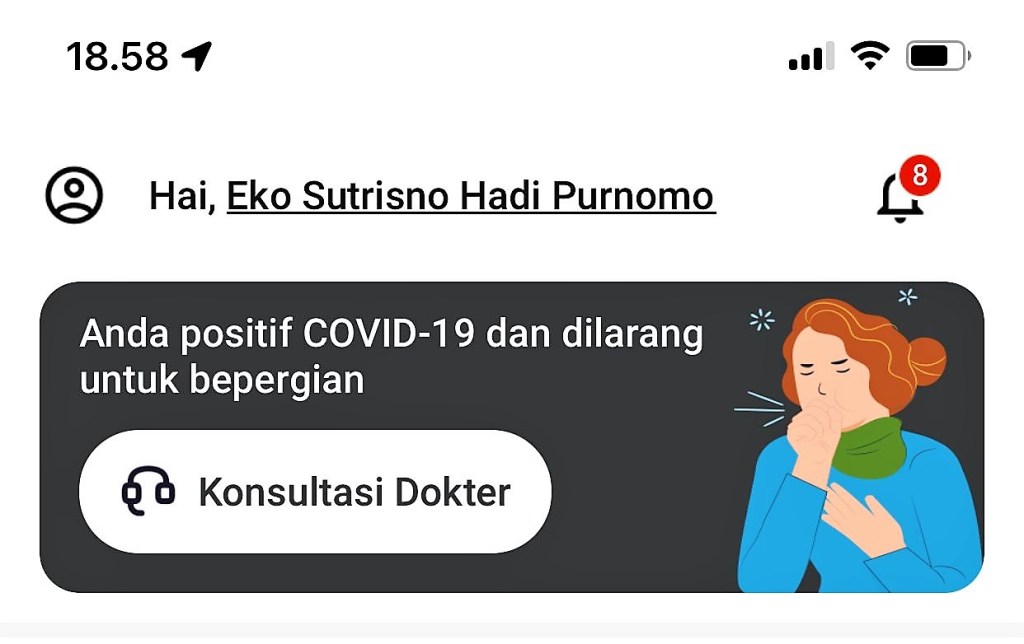Waktu hasil test PCR positive, aku juga segera mendapat pesan dari aplikasi WA kemenkes, luar biasa cepatnya, seolah-olah simbol merah di peduli lindung adalah tombol untuk mengaktifkan layanan kesehatan bagi yang mereka yang disapa corona.