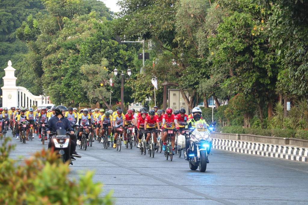 Awal perjalanan rute berseli memang hanya keliling tempat-tempat yang menjadi landmark Solo, sehingga para peserta bisa puas berfoto ria sepanjang rute, baik menanjak di fly over maupun di jalan datar perkotaan, sangat meriah suasana sepanjang menggayuh sepeda. Senyum selalu tersungging di bibir dan canda tawa menemani sepanjang rute, maklum rute dalam kota, sehingga mereka masih bergerombol dan tindak terpisah antara kelompok yang satu dengan yang lainnya.