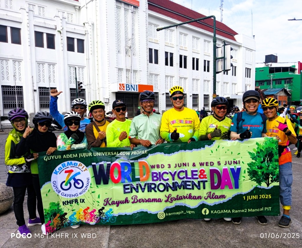 Awalnya hanya main-main saja, meneruskan kebiasaan lama di KaRMaPIT, tapi makin mendekati hari ternyata makin serius menanganinya. Dimulai dari Subuh kita sudah bersiap-siap dan ternyata sudah ramai di lokasi pemberangkatan komunitas sepeda UGM, tidak hanya dari UGM dari non UGM juga benyak, yang UGNM sendiri yang aktif tidak semuanya datang, ternyata yang tidak aktif juga ikut datang. Mungkin karena ada tulisan #yarwe jadi pada tidak rikuh untuk ikut bersepeda bersama kelompok resmi yang ada.